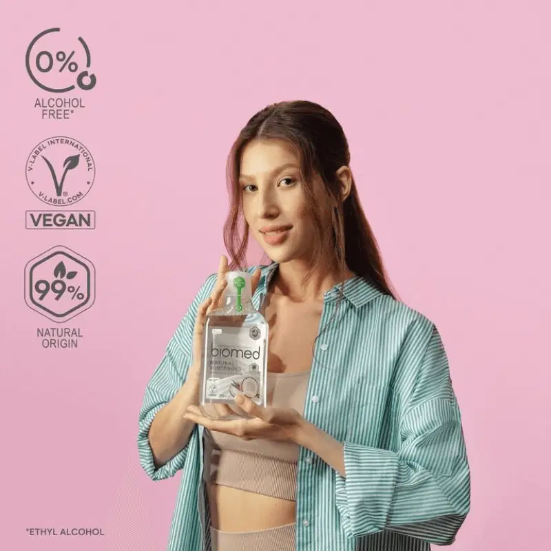 Discover gentle daily whitening with Biomed Natural Whitening Mouthwash, enriched with natural coconut extract and carefully selected plant ingredients. Designed to deliver freshness, protection, and enamel strengthening – all while being kind to your teeth and gums.